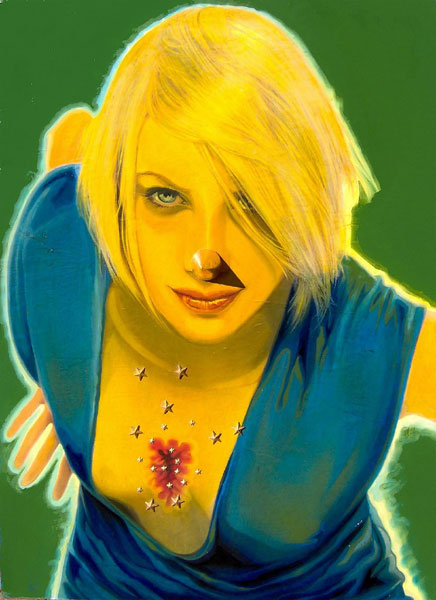 olio su stampa pubblicitaria su tavola