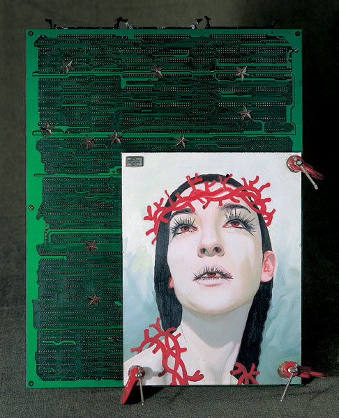 olio su stampa pubblicitaria e cip integrato
