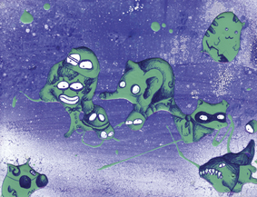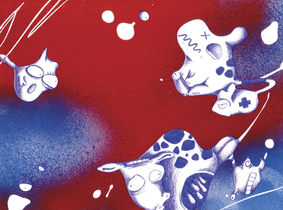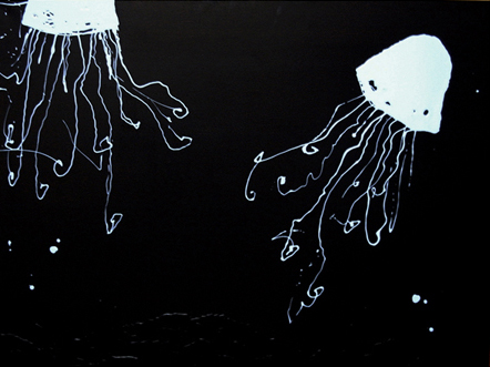 "diagnosi"- biro e pennarello su tela ritagliata-123,5x11cm-2004